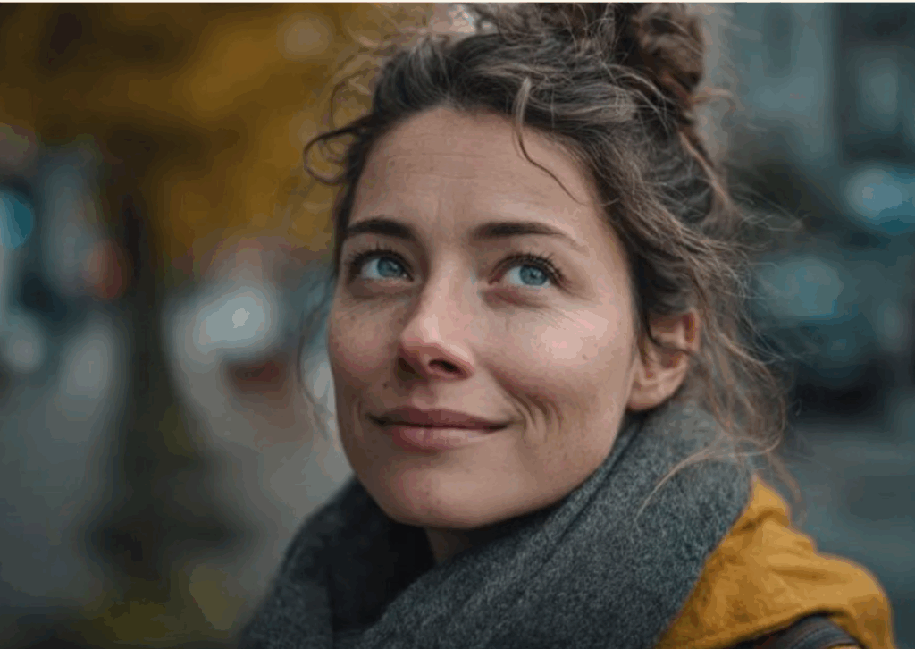 I wtedy ją zobaczyłam.Była młodą kobietą w szarym bluzie, która kiedyś była miękka, a teraz straciła kolor i ciepło. Jej włosy były byle jak związane w kucyk, a w oczach odbijało się zmęczenie nie z pracy, lecz z samego życia.