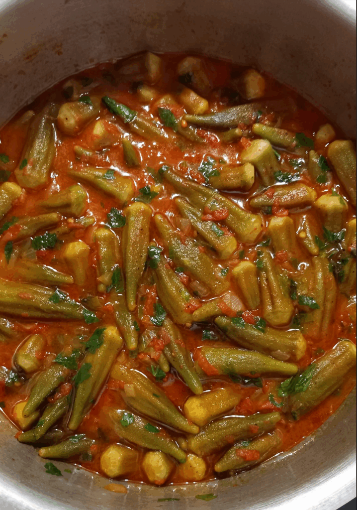 Piecz w rozgrzanym piekarniku w temperaturze 180Β°C przez okoΕo 1 godzinΔ, aΕΌ okra i ziemniaki bΔdΔ miΔkkie, a sos pomidorowy zgΔstnieje.