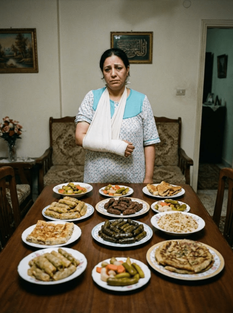 —Ahmed, nie mogę się ruszać, nie mogę gotować, nie mogę sprzątać… ledwo mogę się ubrać!Krzyknął:—To nie mój problem! To twoja odpowiedzialność, żeby przyjęcie się udało! Jeśli coś pójdzie nie tak, to twoja wina… wiesz, że pokażę to wszystkim.