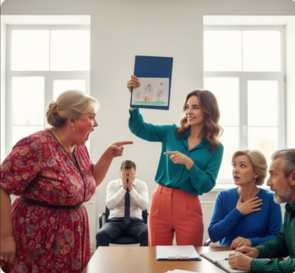 Spokojnie otworzyłam torebkę i wyjęłam niebieską teczkę. Teściowa uśmiechnęła się triumfalnie.Otworzyłam ją. W środku była jedna kartka: mój dziecięcy rysunek z czasów, gdy miałam pięć lat — mały domek z kominem.