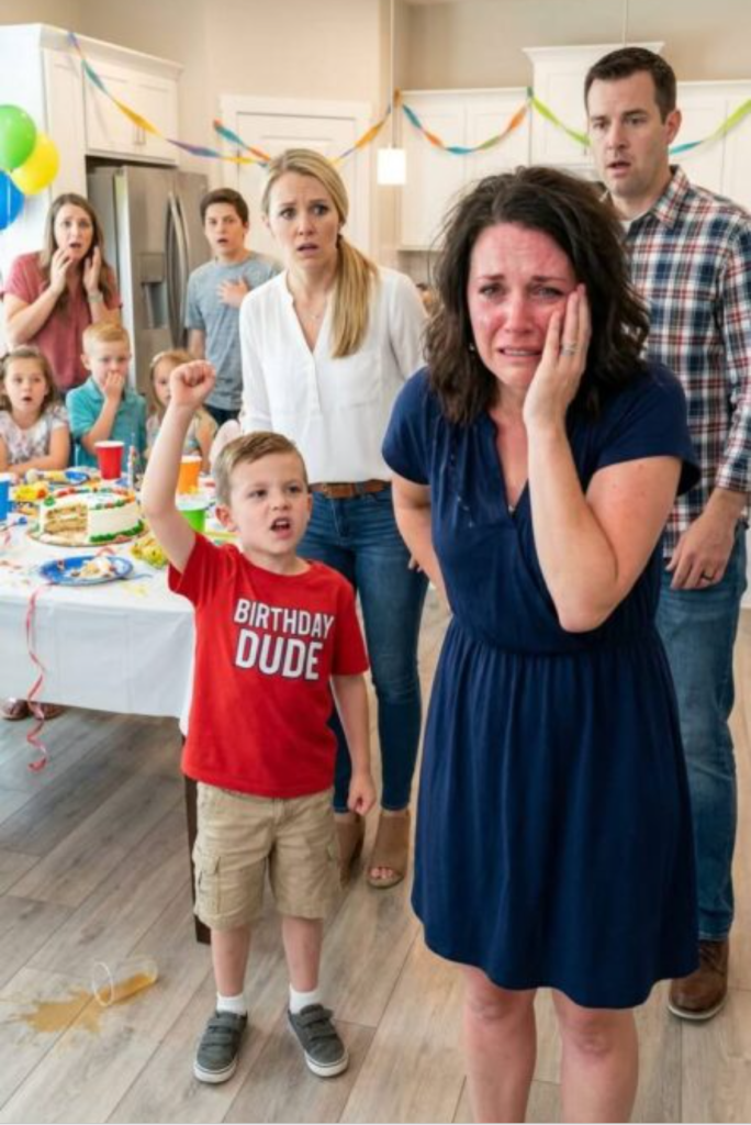 Stanął tuż przede mną. Cztery lata, wielkie oczy, usta ubrudzone czekoladą. Spojrzał mi prosto w twarz — i uderzył mnie.Nie mocno. Ale wystarczająco wyraźnie.W pokoju nie zapadła całkowita cisza. Muzyka grała dalej