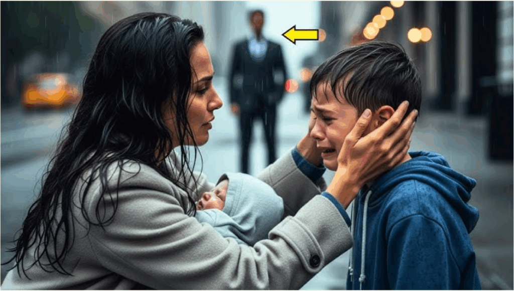Skromna matka pomaga zapłakanemu chłopcu, trzymając na rękach własnego syna – nie wiedząc, że ojciec milioner dziecka obserwuje to z ukrycia.