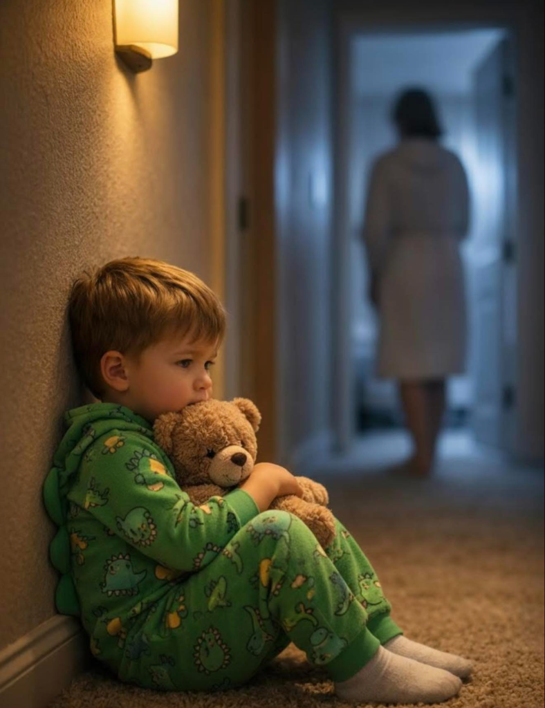 „Synu, gdzie jesteś teraz?” zapytał ojciec, próbując brzmieć spokojnie, ale drżał ze strachu. „Jesteś sam?”„Jestem w korytarzu… przy drzwiach mamy” — wyszeptał chłopiec. „Obudziłem się i usłyszałem ją krzyczącą. Zapukałem, ale nie odpowiedziała.”
