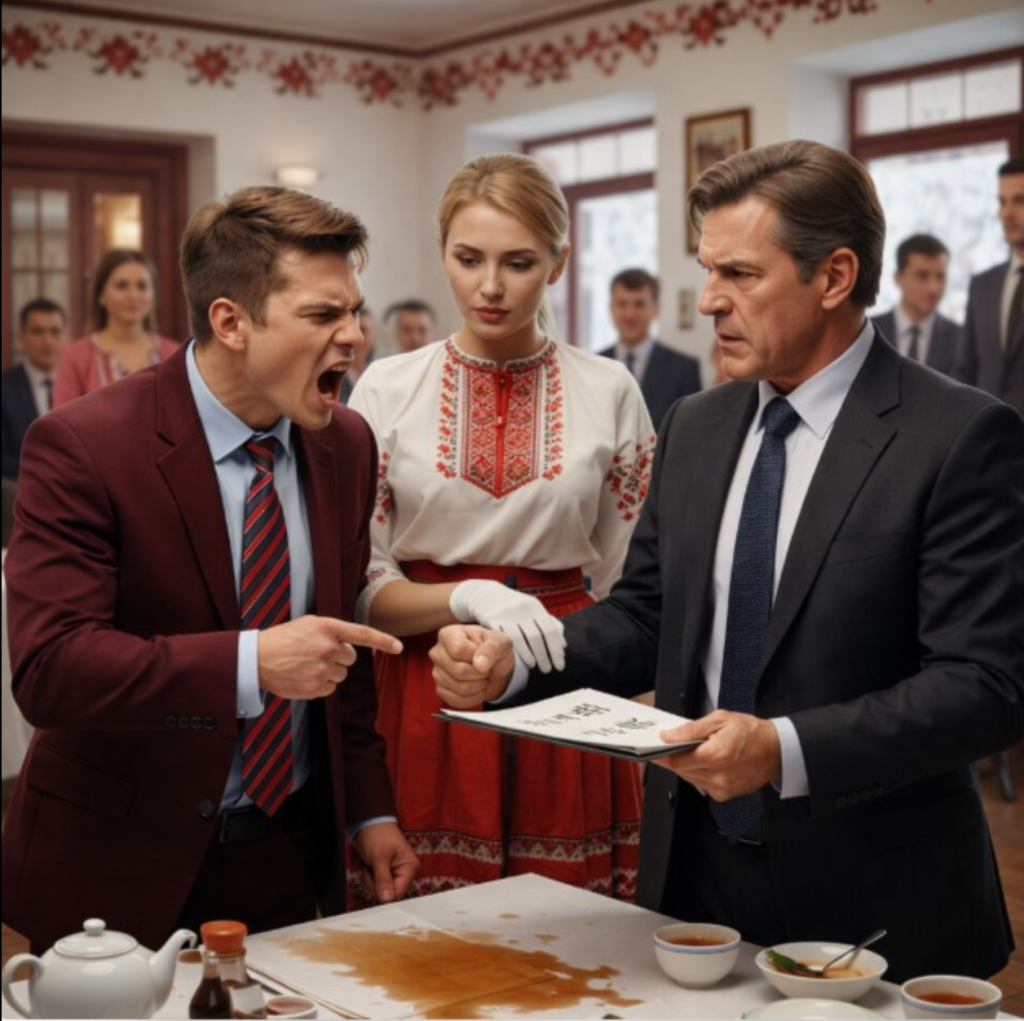 — Co robisz?! — krzyknął Oleg, cofając się. — Moje ubranie prawie zniszczone! Pięć tysięcy dolarów!— Przepraszam… — Taja poczerwieniała ze zdziwienia, ale szybko chwyciła serwetkę i próbowała wytrzeć wodę, nie niszcząc papierów.— Zabierz to stąd! — krzyknął Oleg, grożąc dziewczynie. — Natychmiast wezwij administratora!